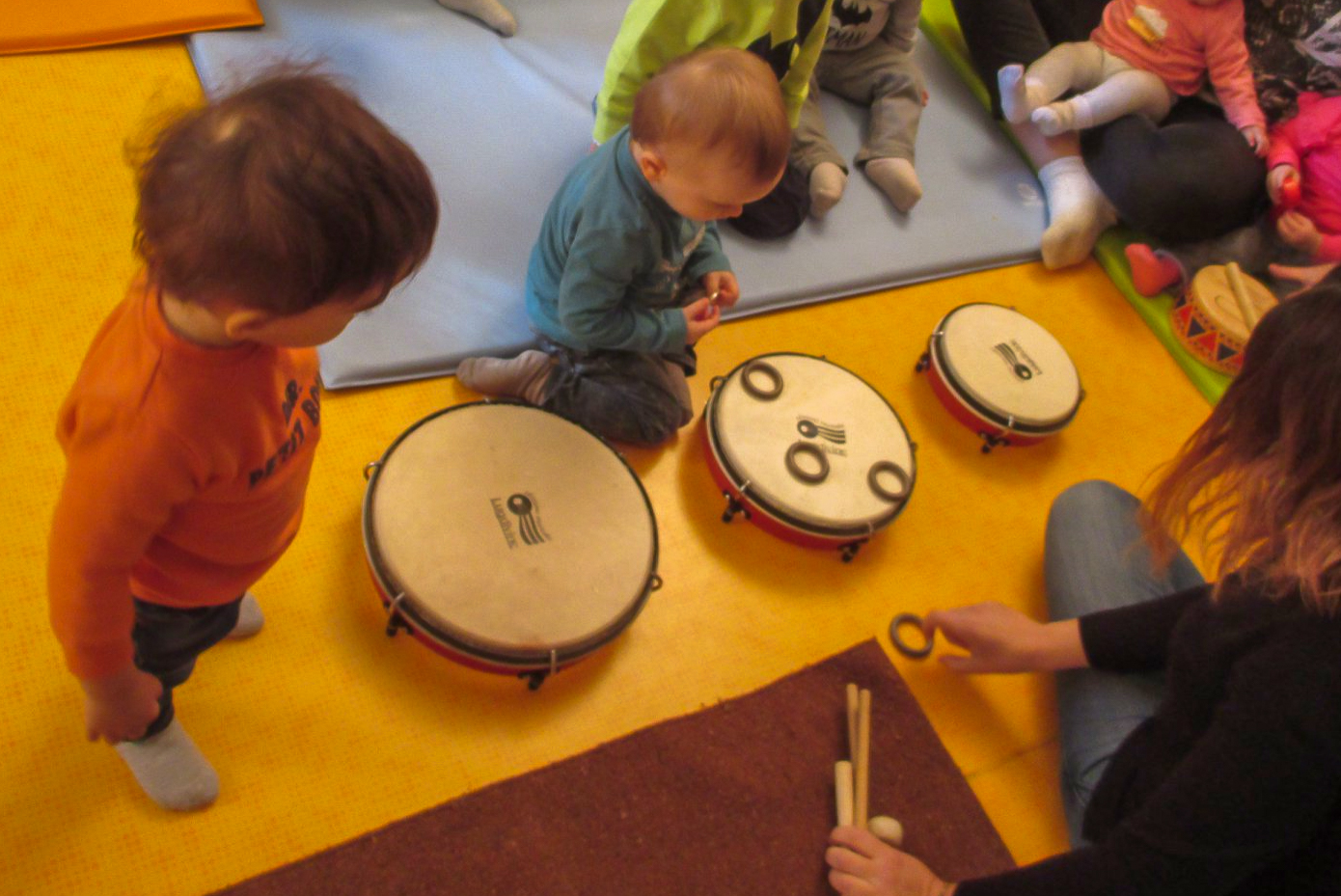 Avec les tout-petits, notre musicienne intervenante propose des séances musicales d’une quarantaine de minutes basées sur l’exploration instrumentale, la créativité, le plaisir (pour les enfants mais aussi pour les adultes présents) et l’échange.